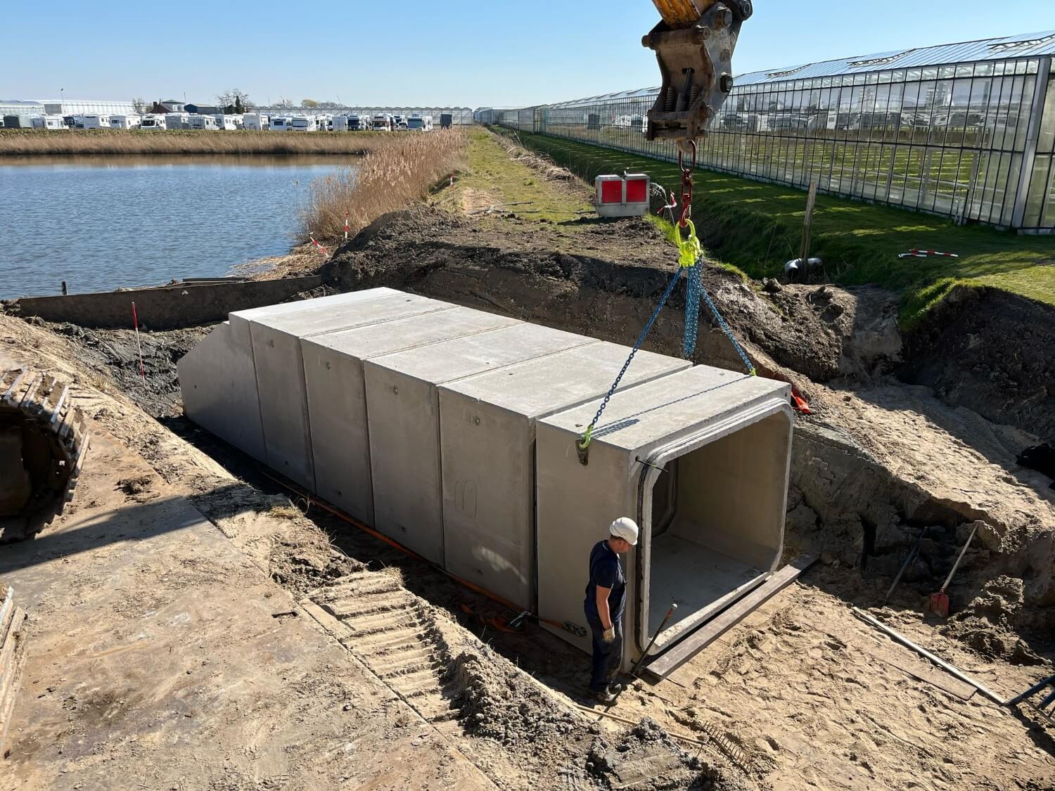 Opdrachtgever: Hoogheemraadschap van Schieland en de Krimpenerwaard Voor het Hoogheemraadschap van Schieland en de Krimpenerwaard hebben wij een nieuwe waterverbinding gerealiseerd tussen twee peilgebieden door middel van een voorgespannen betonnen kokerduiker.
